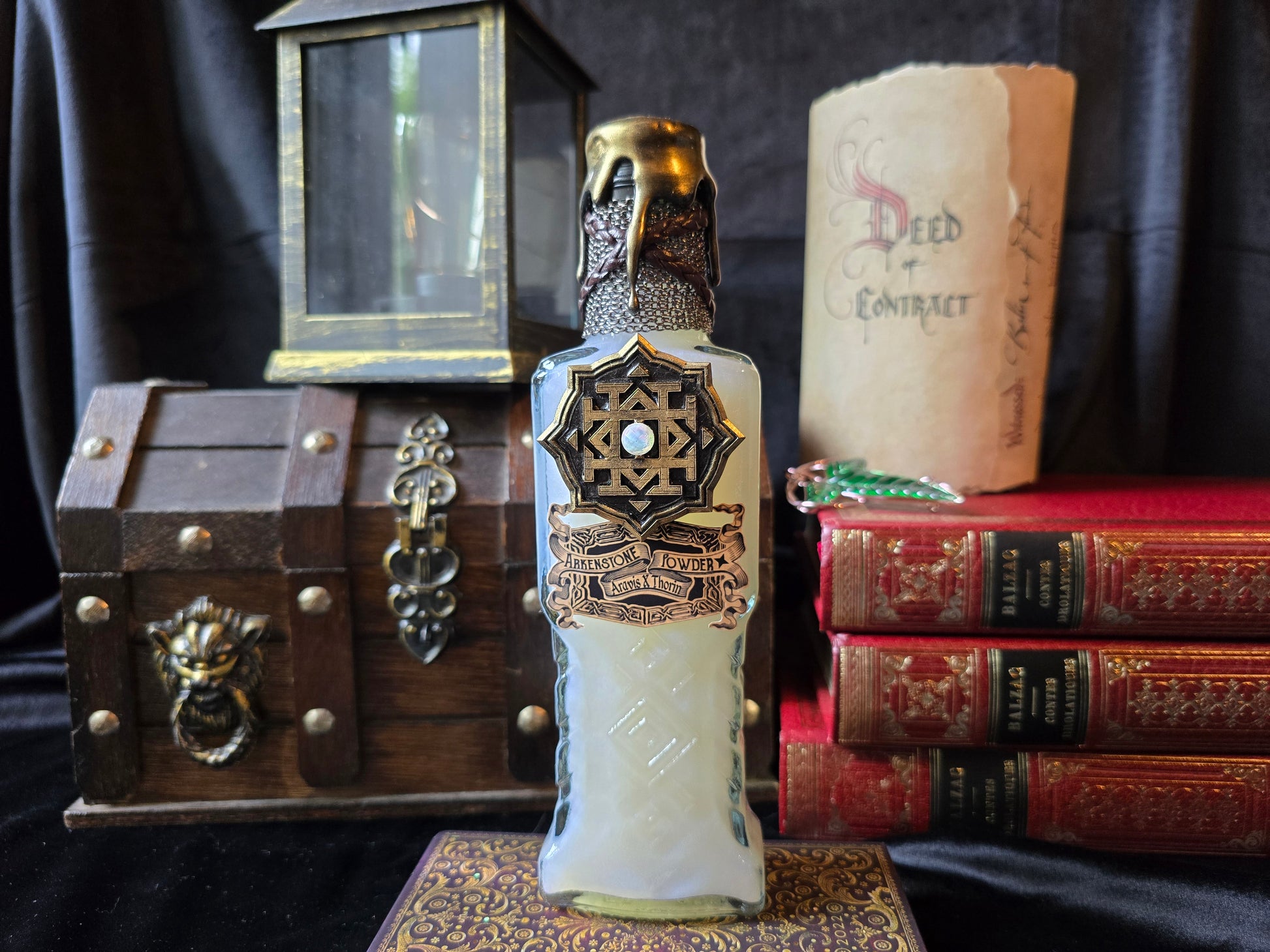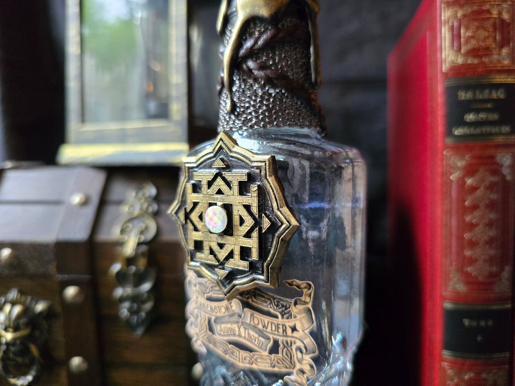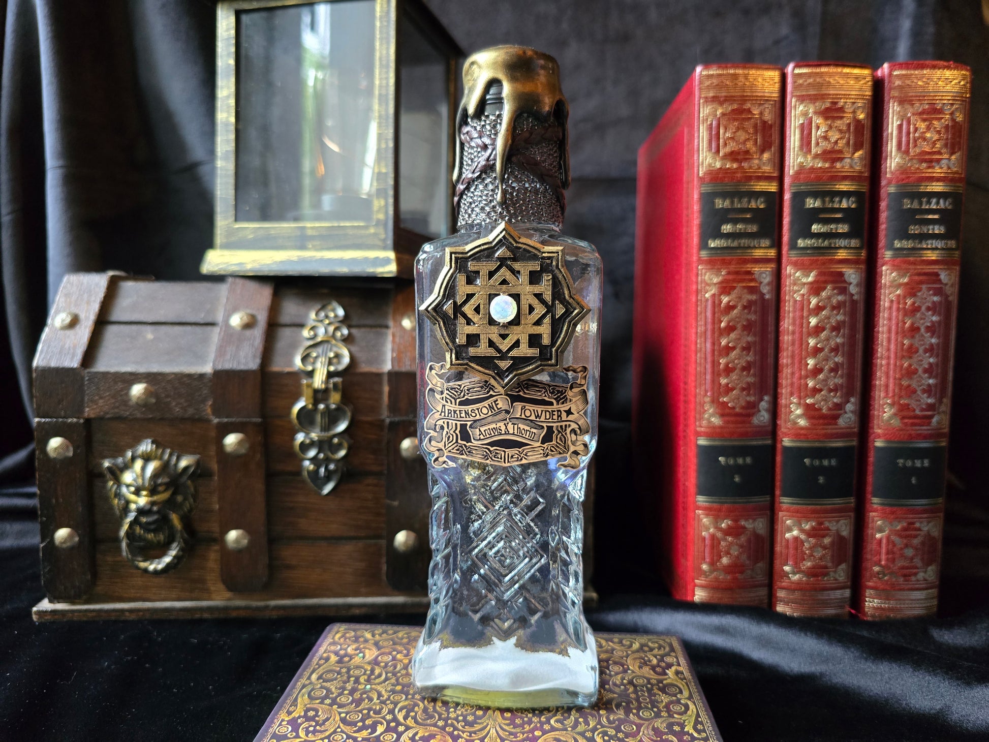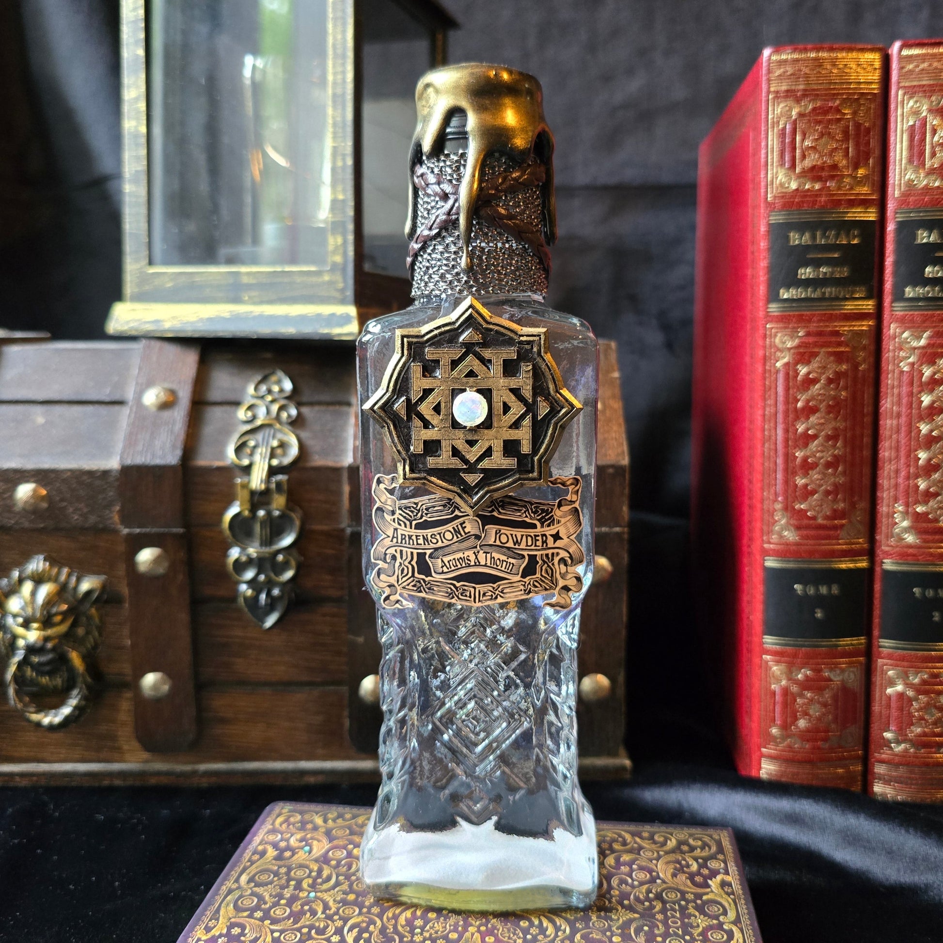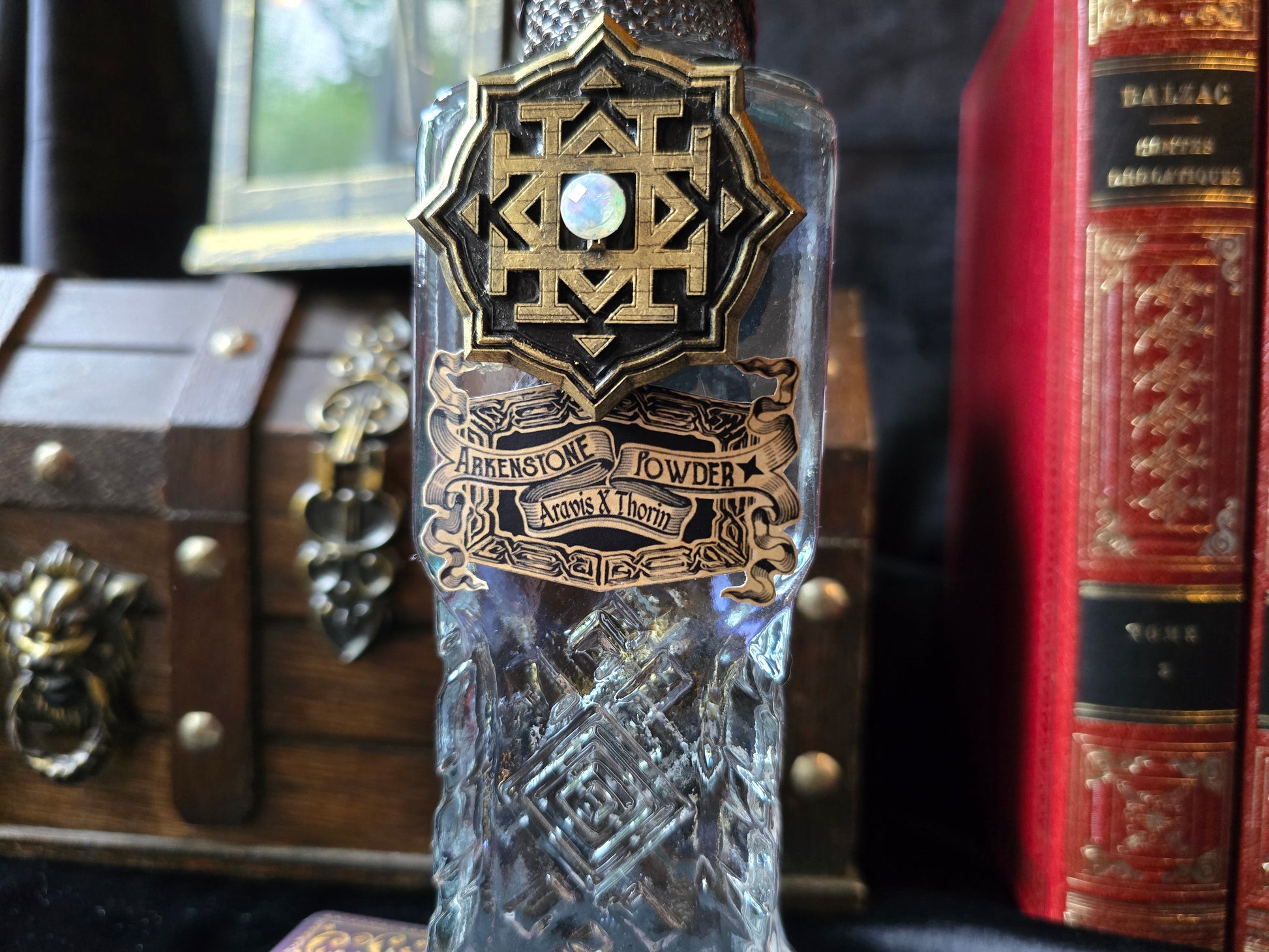 Potion Arkenstone Powder – potion poudre de pierre Arcane – Hobbit – LOTR - Bouteille en verre de décoration terre du milieu – Fiole d’apothicaire.