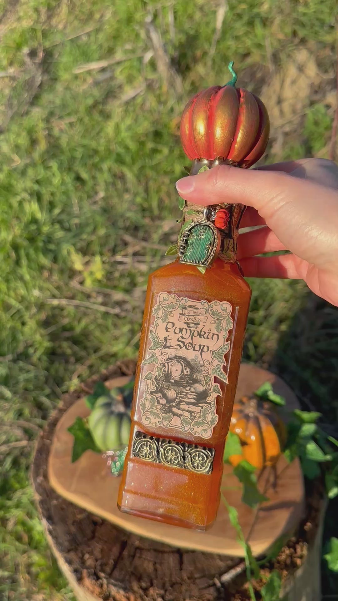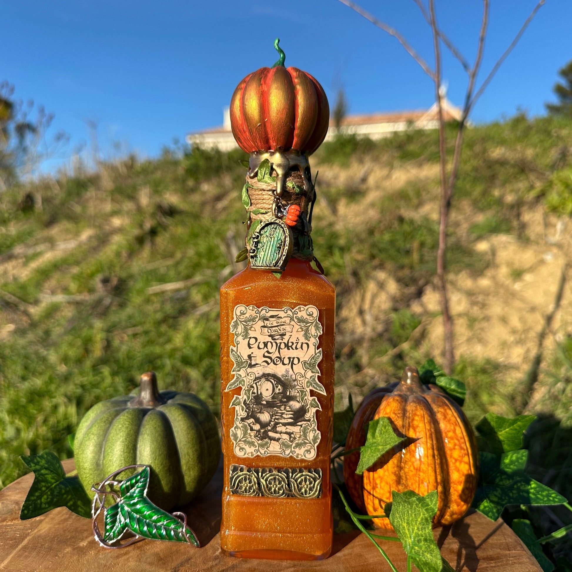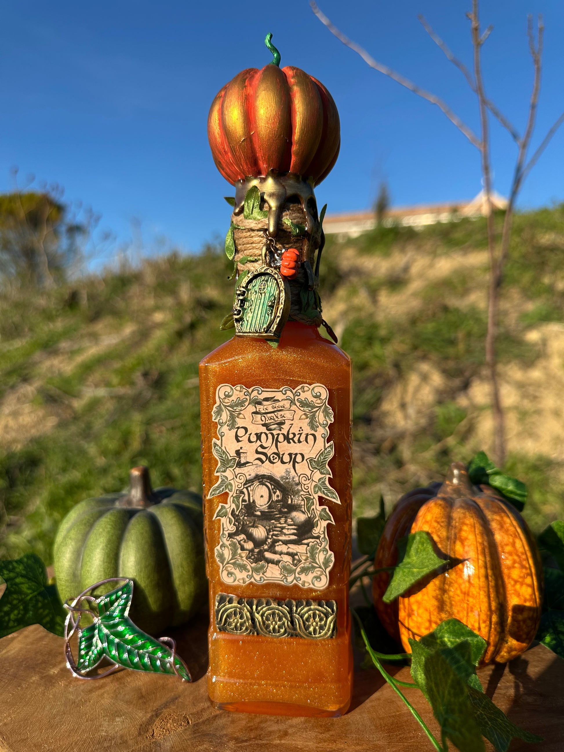 Potion pumpkin soup - soupe à la citrouille de Bilbon de la Comté – potion magique – Hobbit – LOTR - Bouteille en verre de décoration terre du milieu – Fiole d’apothicaire.