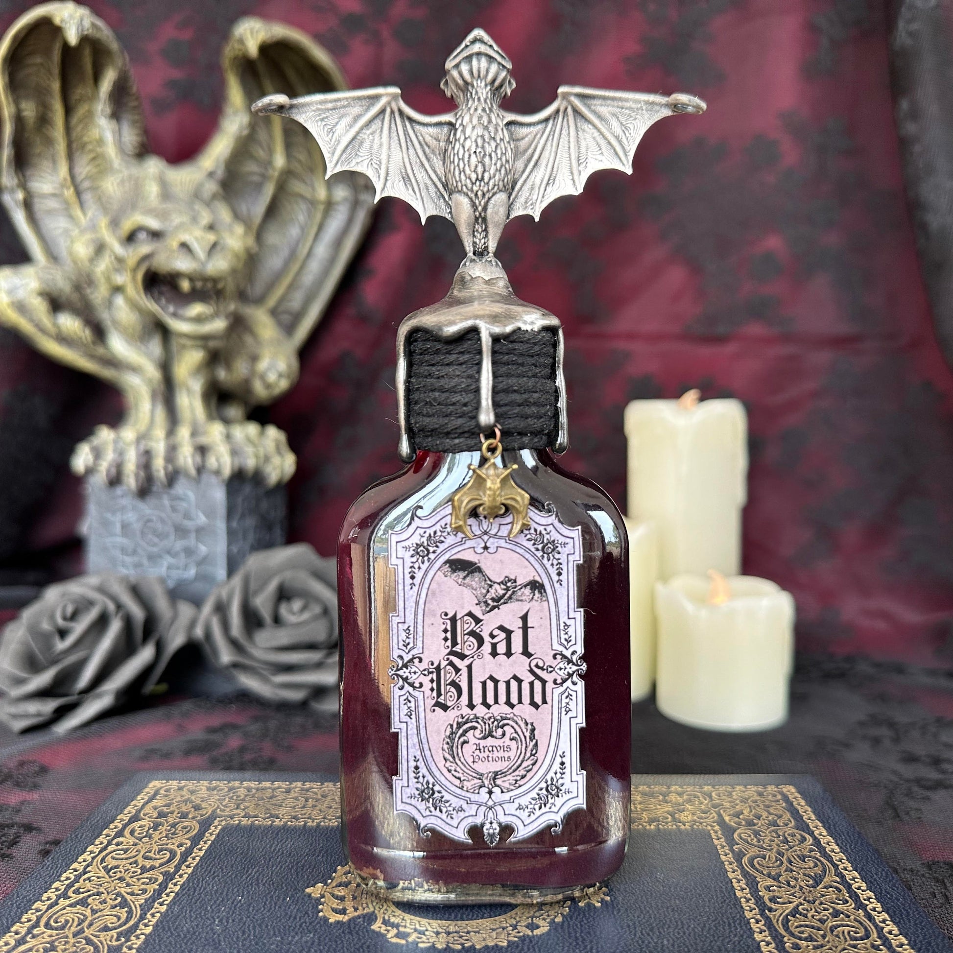 Sang de Chauves-souris – Bat Blood – Halloween – Spooky – Gothique – Bouteille en verre de décoration sorcières, sorciers, fiole d’apothicaire.