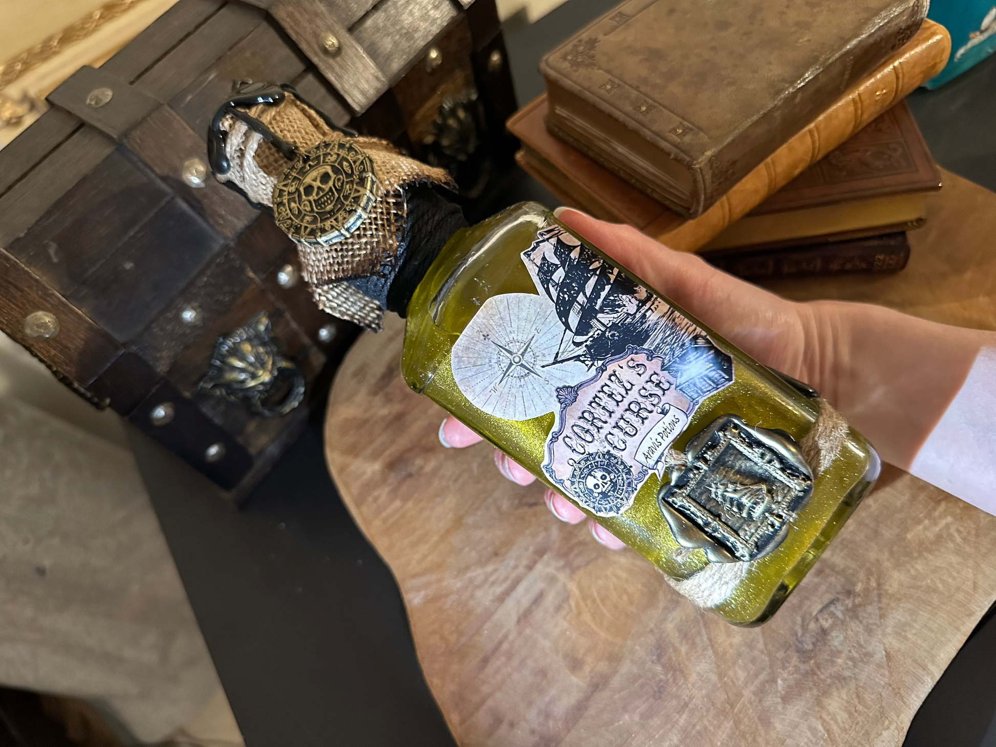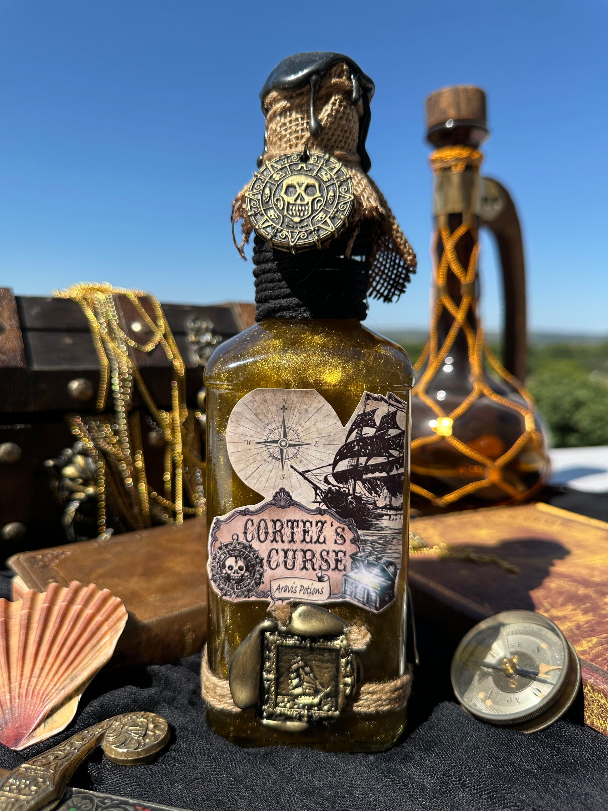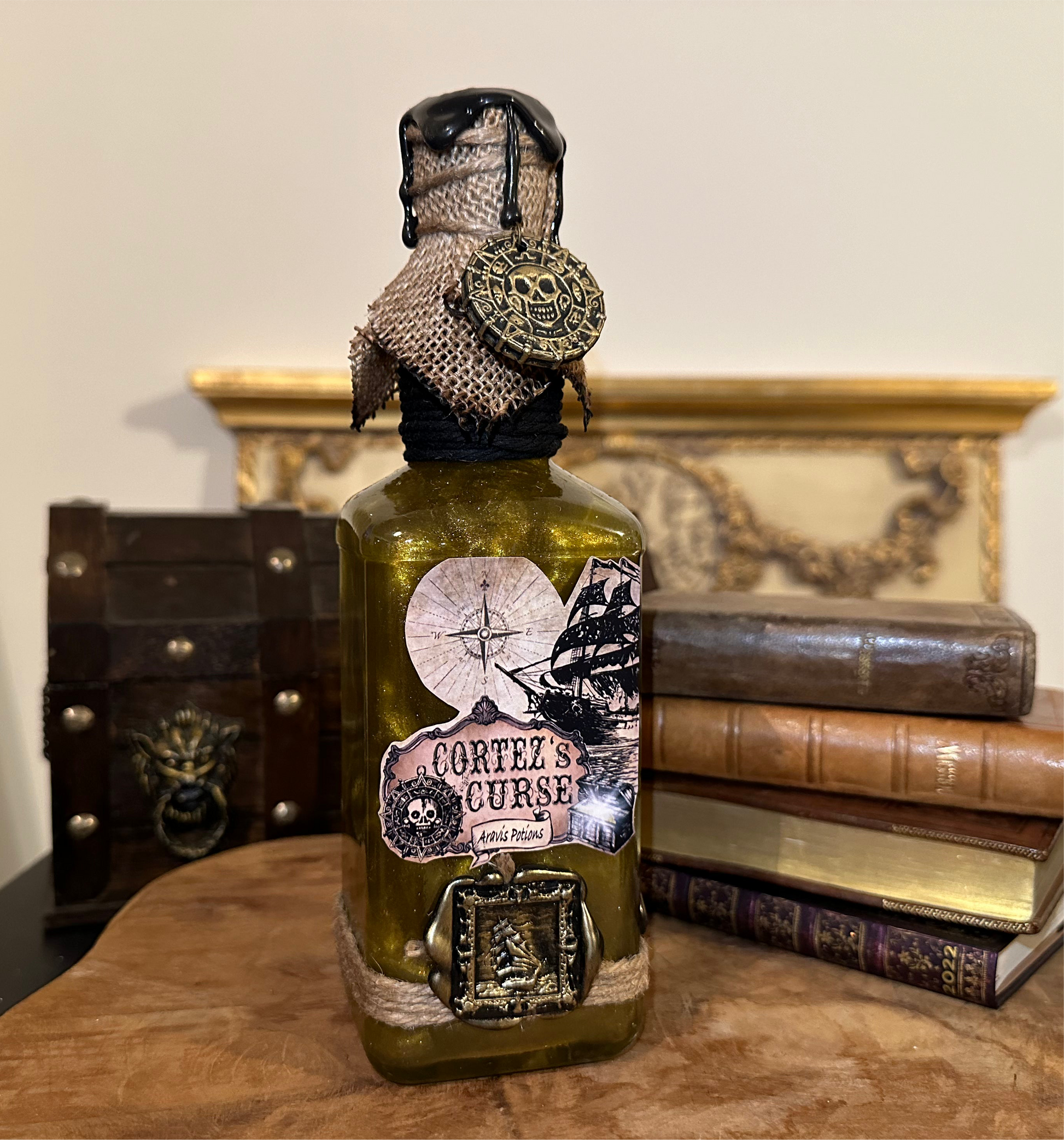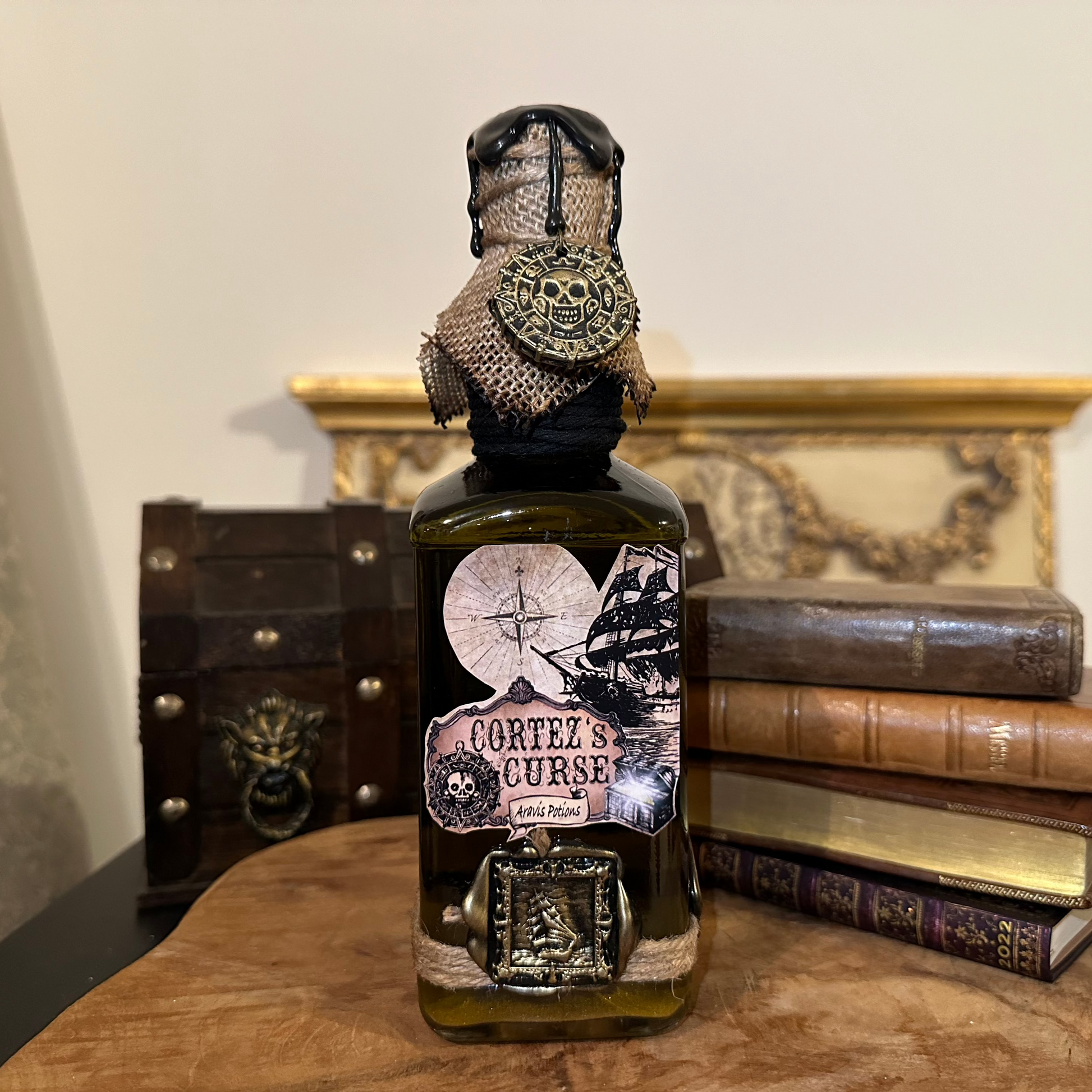 La malédiction de Cortez – Cortez’s Curse – Pirates - Bouteille en verre de décoration pirates – Fiole d’apothicaire
