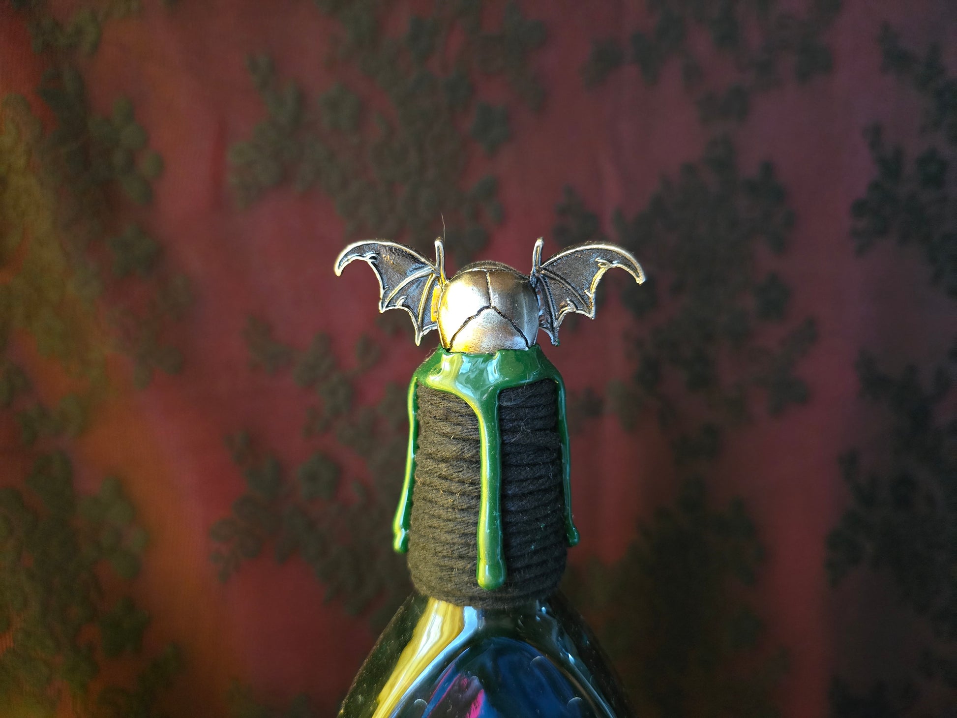 - Une tête de mort ailée est fixée en gaut du bouchon.