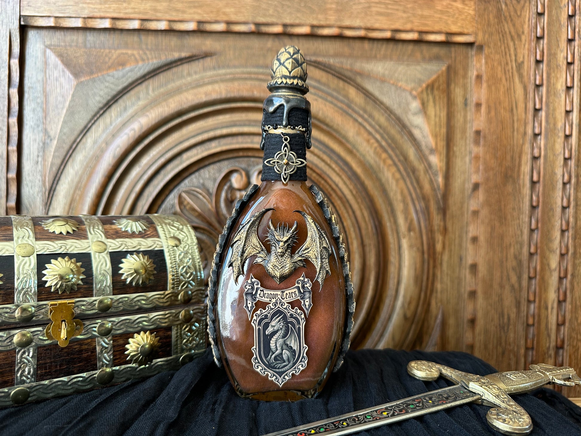 L’armée de dragons, Dragons, potion magique, Bouteille en verre de décoration thème Mythologie/Dragons, Fiole d’apothicaire.