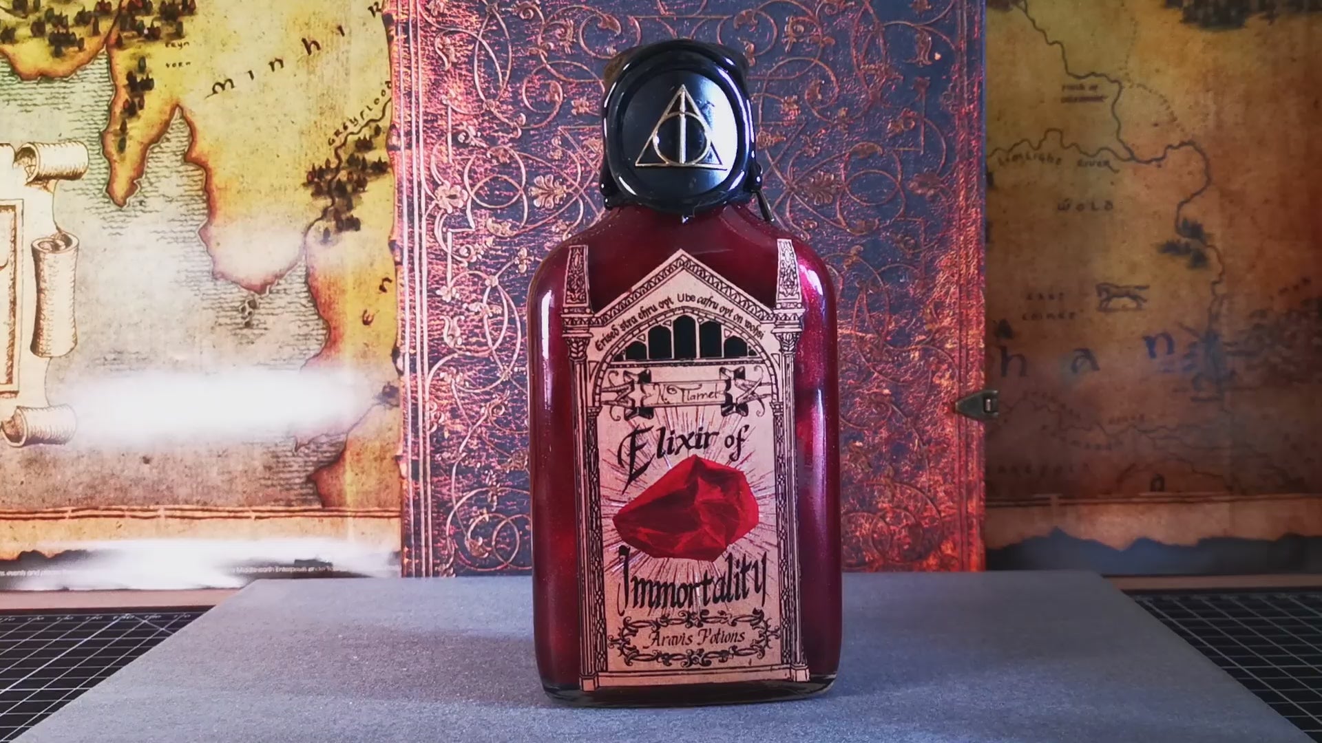 Elixir d’Immortalité potion magique de sorcier, Elixir of Immortality, Rised, Erised, Bouteille en verre Harry Potter, Fiole d’apothicaire.