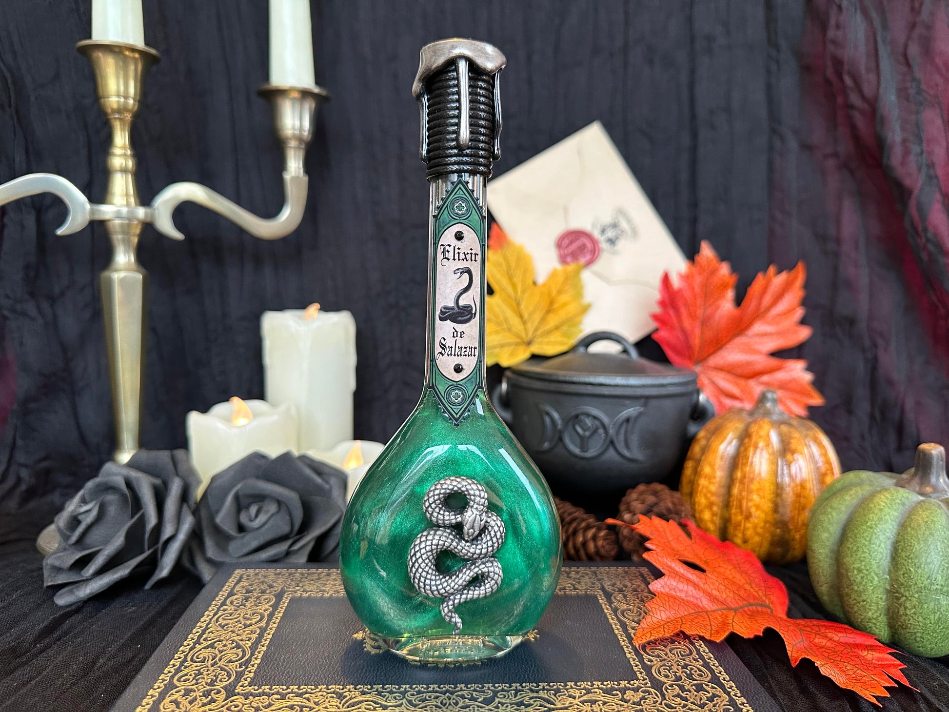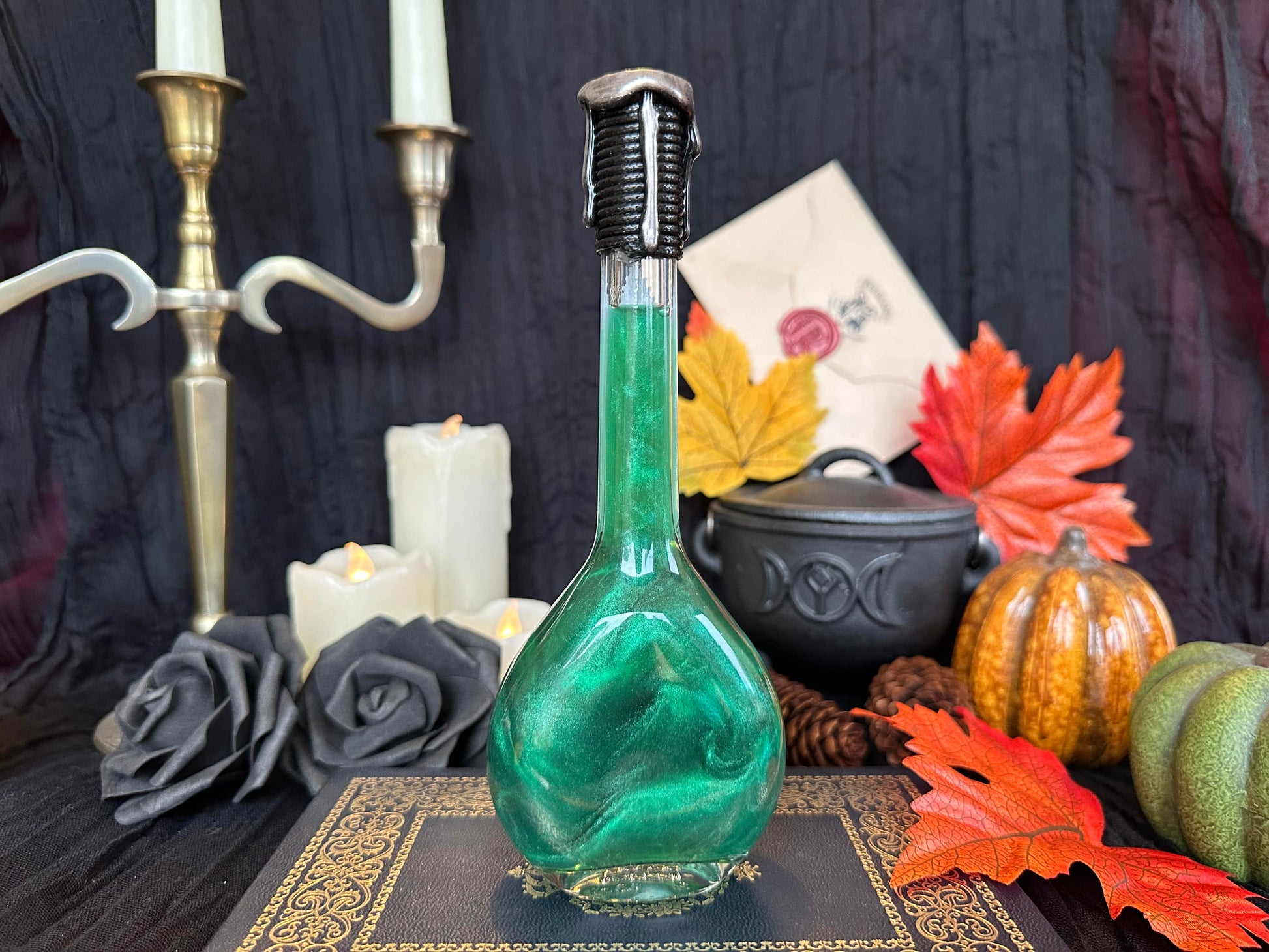 Amortentia, Love potion, Potion magique de sorcier, Philtre d'amour, Bouteille en verre de décoration, Fiole d’apothicaire, alchimiste.