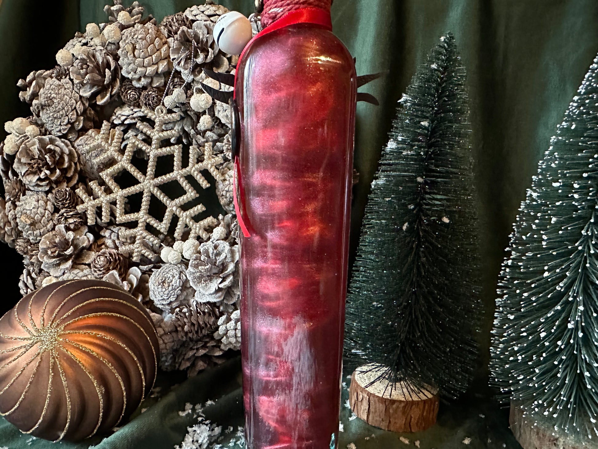 - Elle est remplie d'un liquide rouge qui tourbillonne après agitation pour un effet magique.
