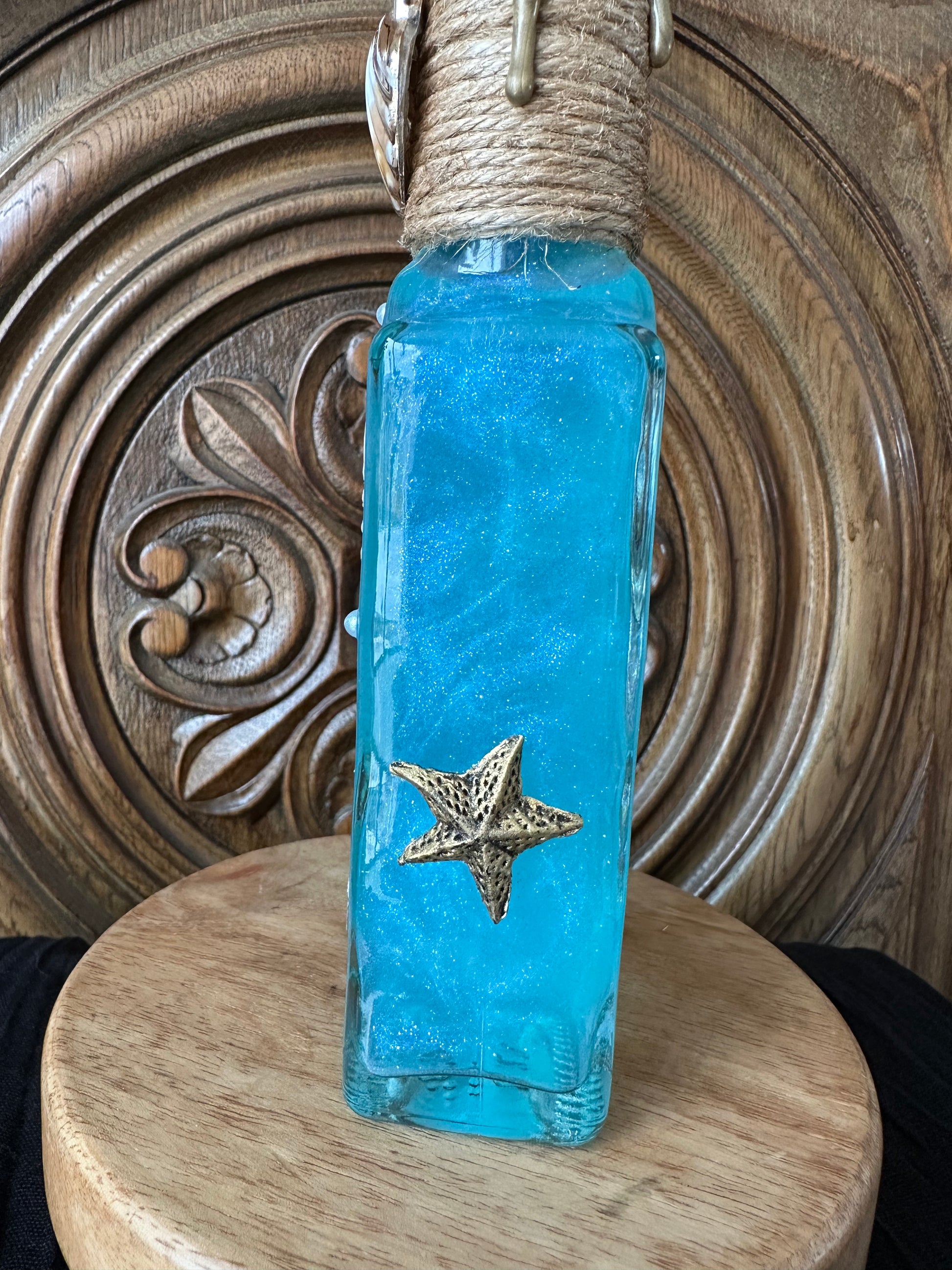 - 1 queue de sirène est nouée à de la corde enroulée autour du haut de la fiole.
