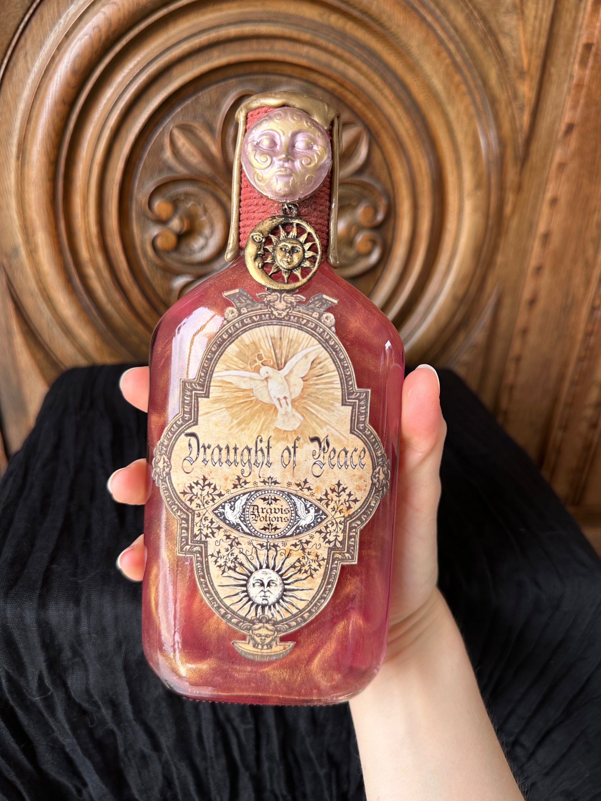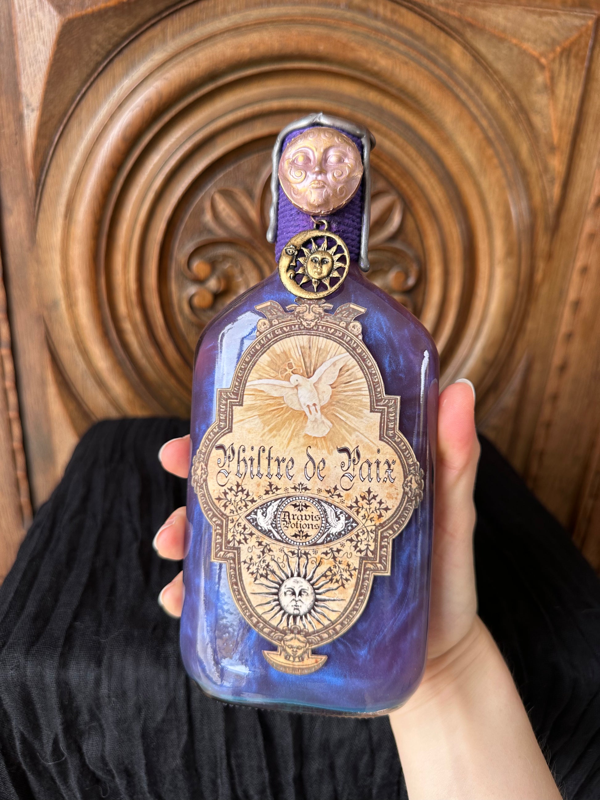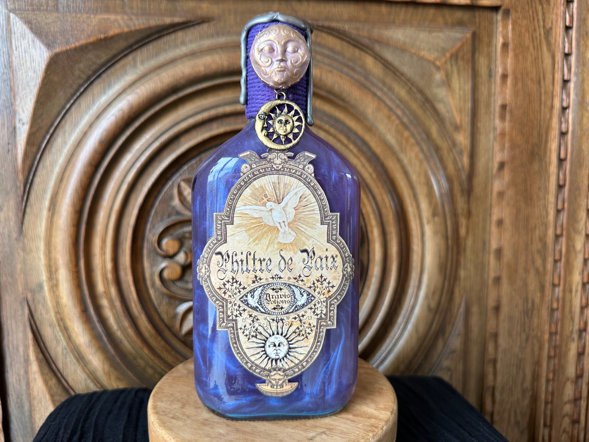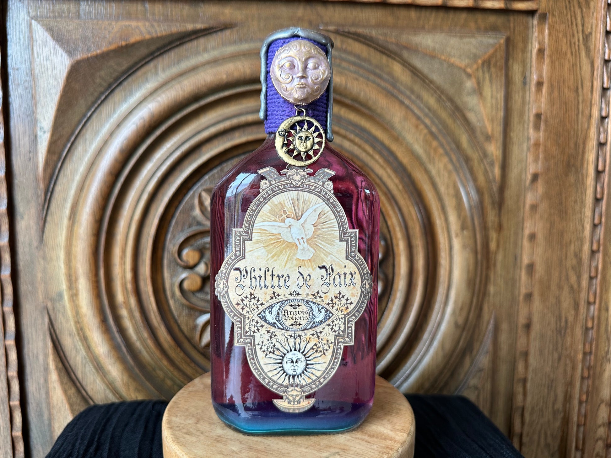 Philtre de Paix, Potion magique de sorcier, Draught of Peace, Bouteille en verre de décoration, Fiole d’apothicaire.