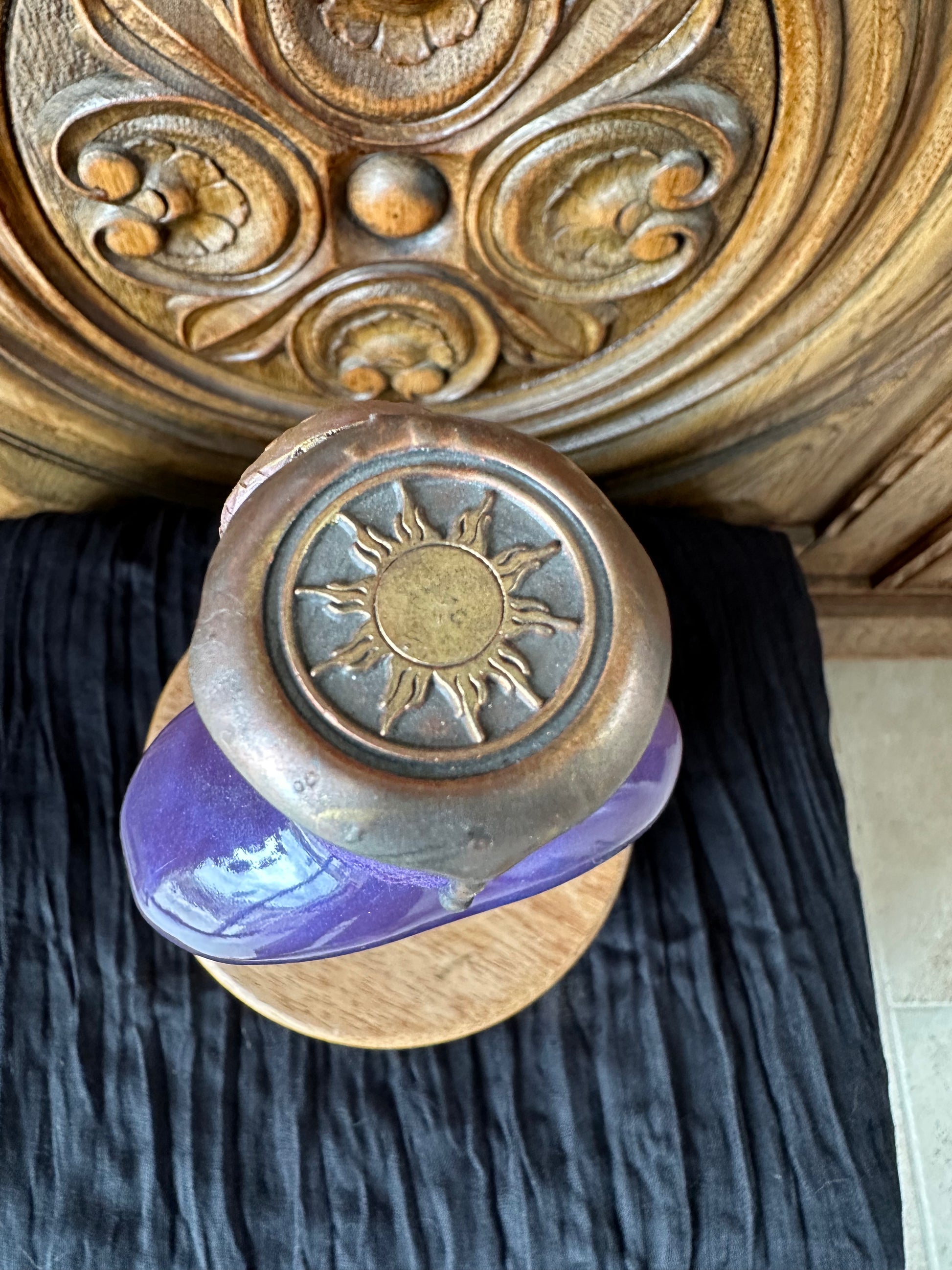 - Une pleine lune avec un visage en résine peint à la main est fixé en haut de la fiole,