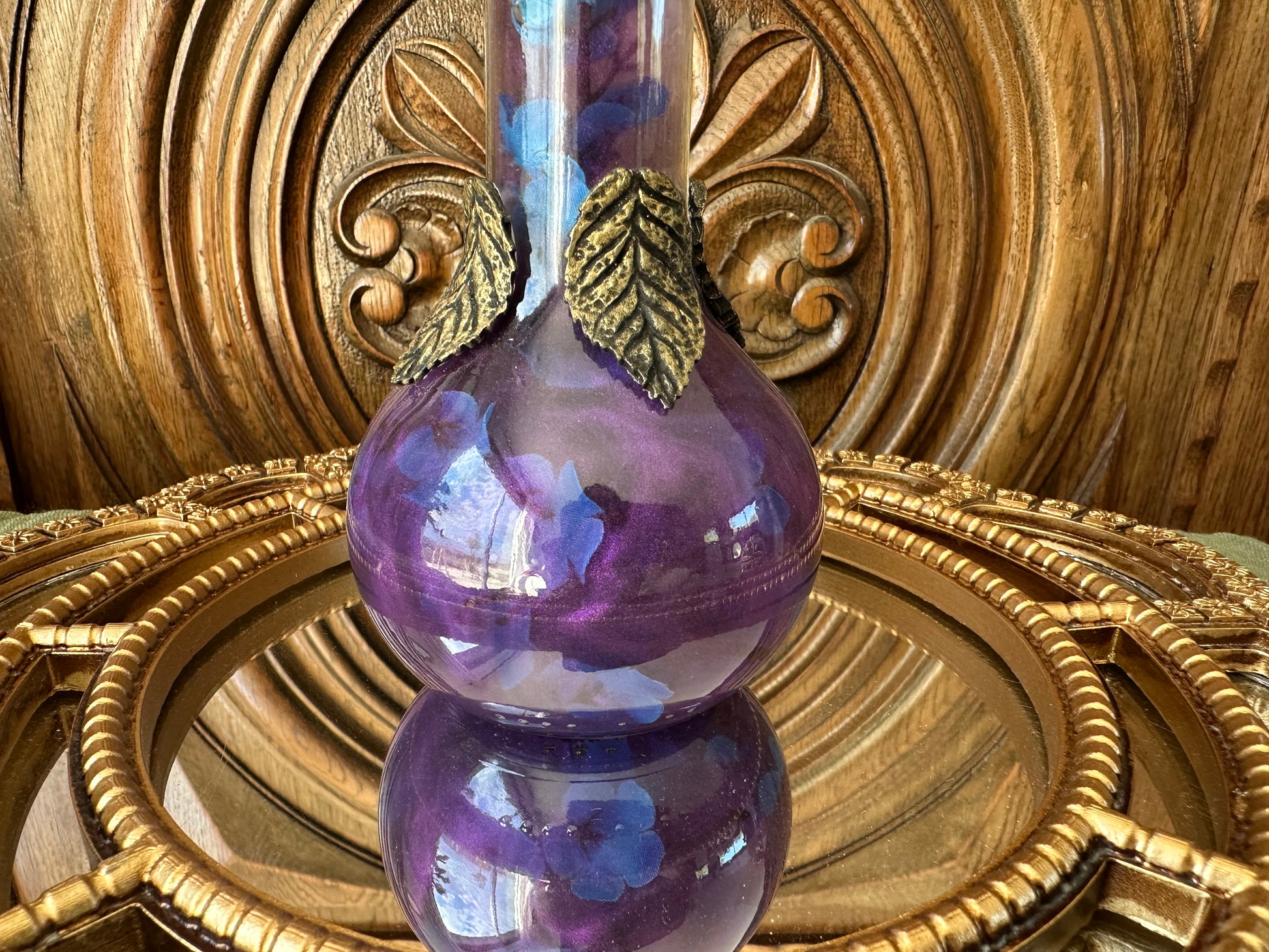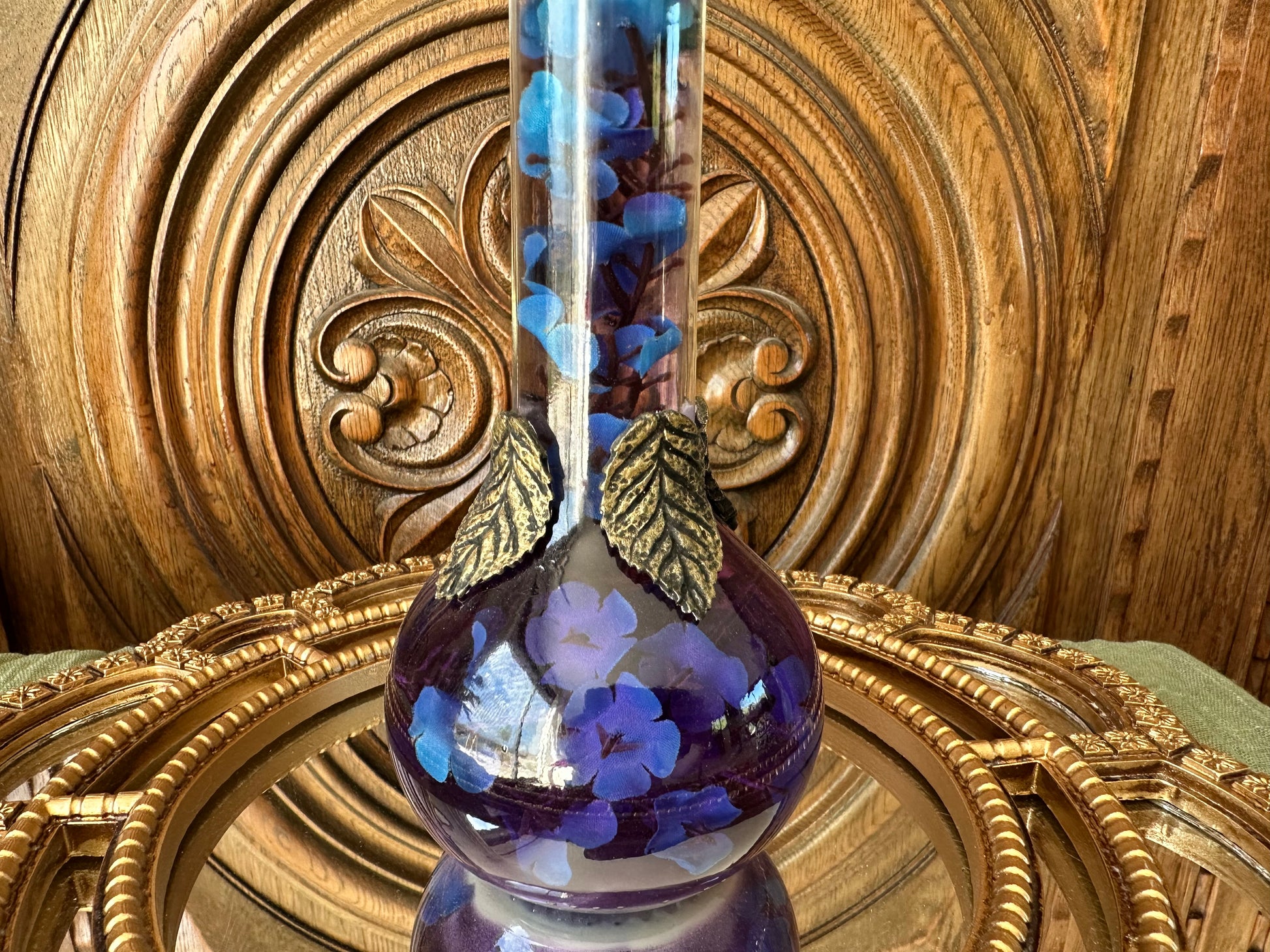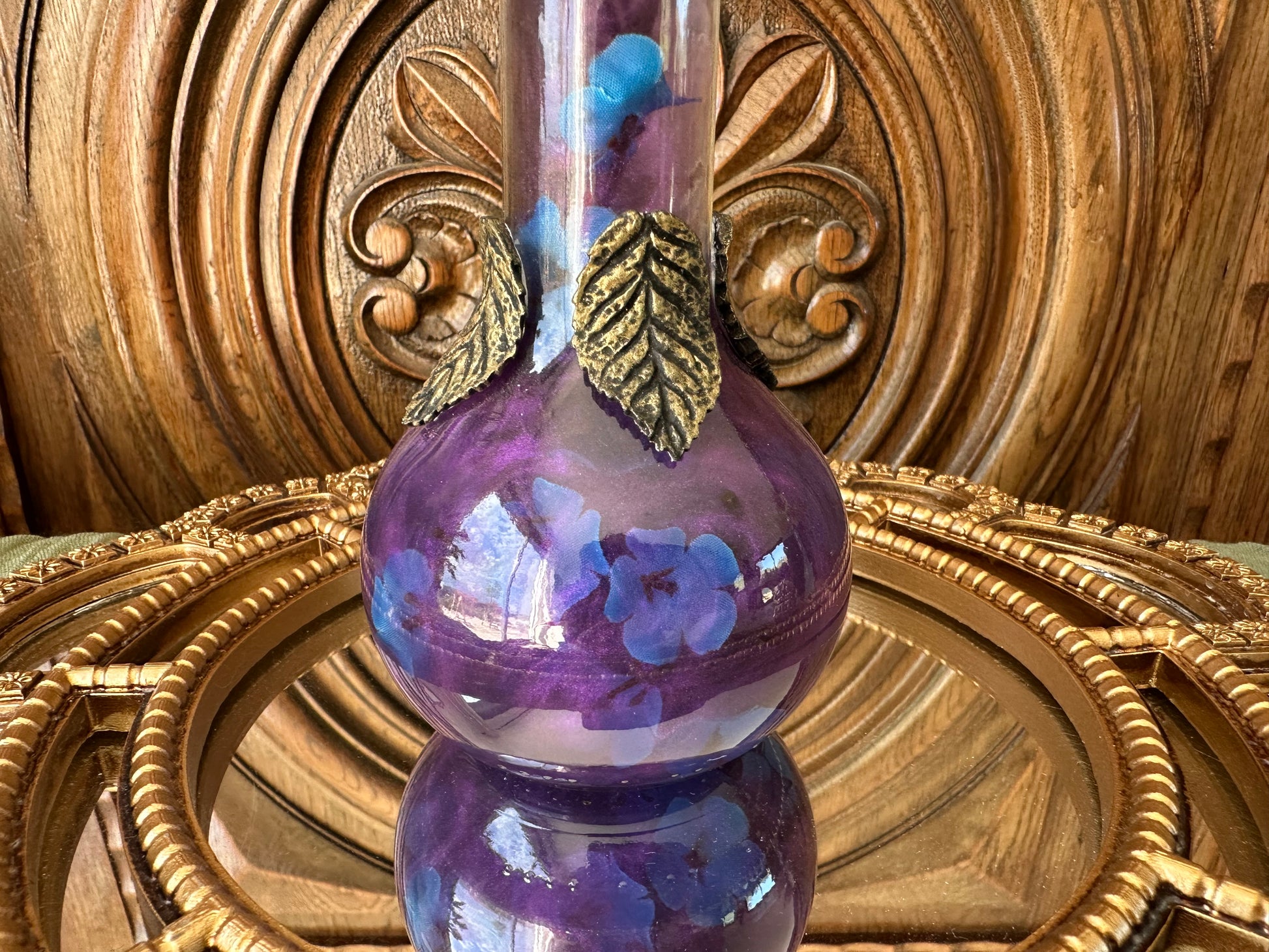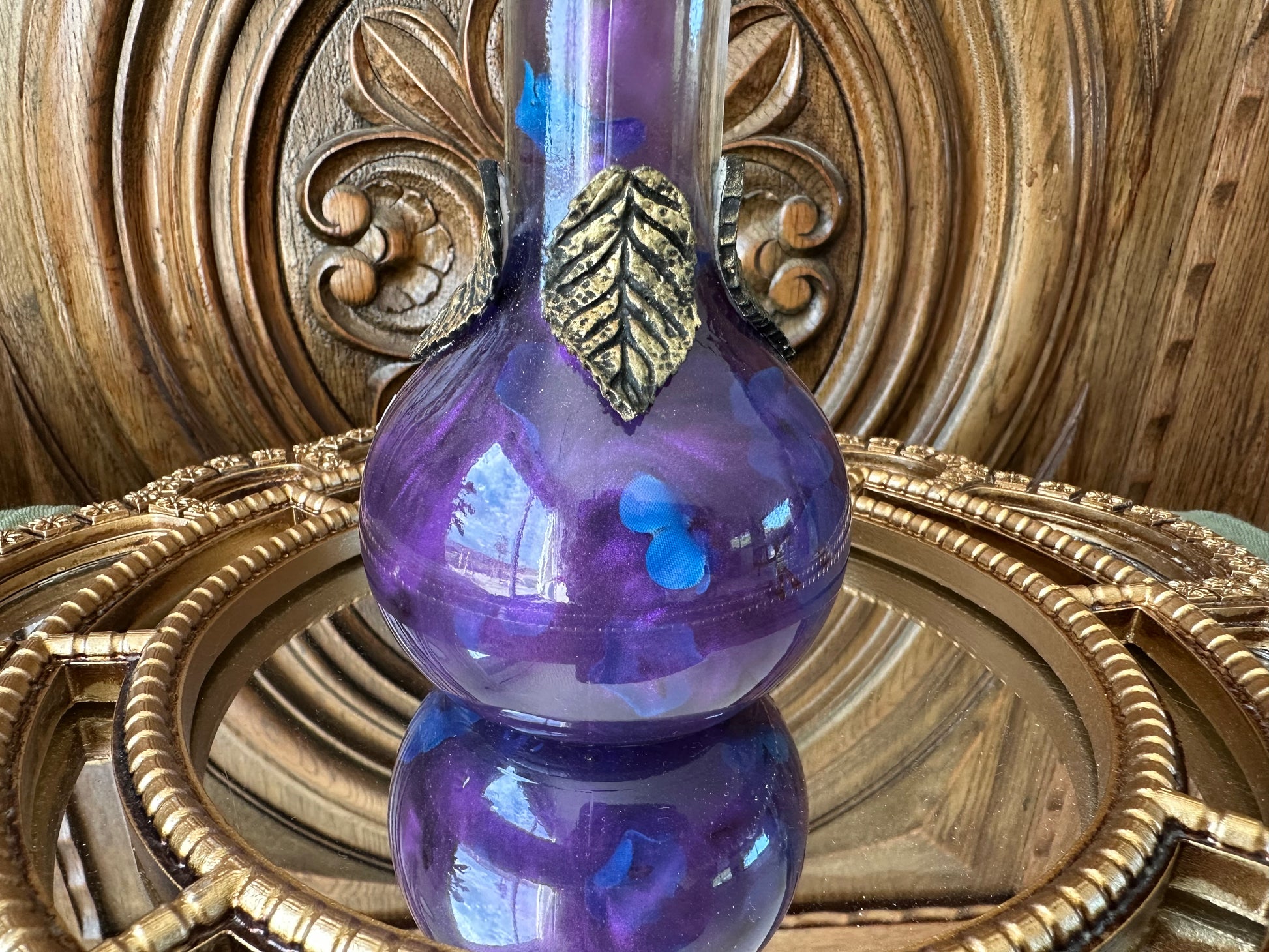 - des feuilles dorées sont fixées en contrebas de la fiole.
