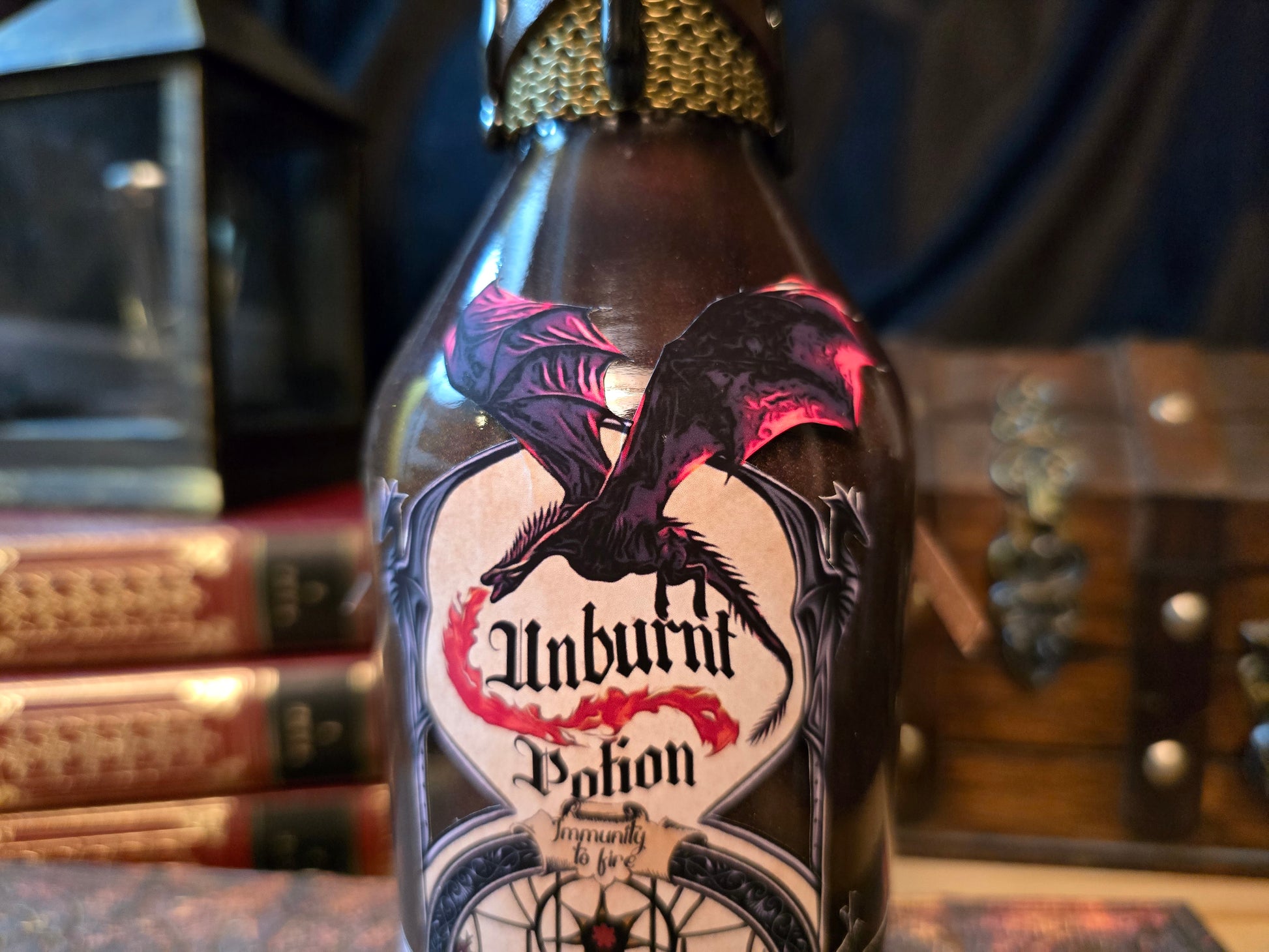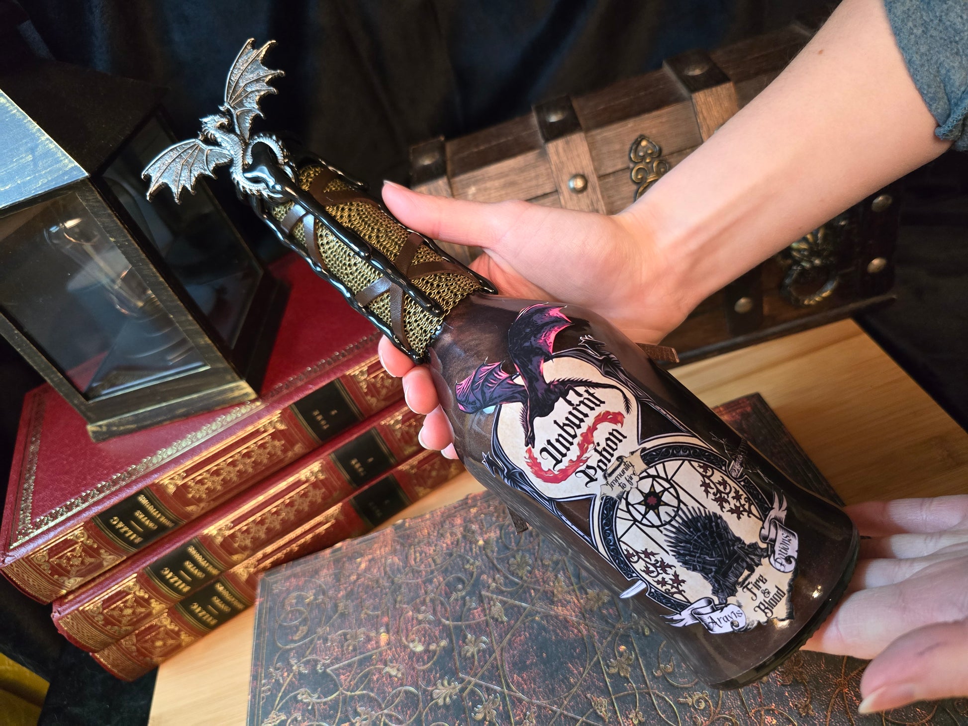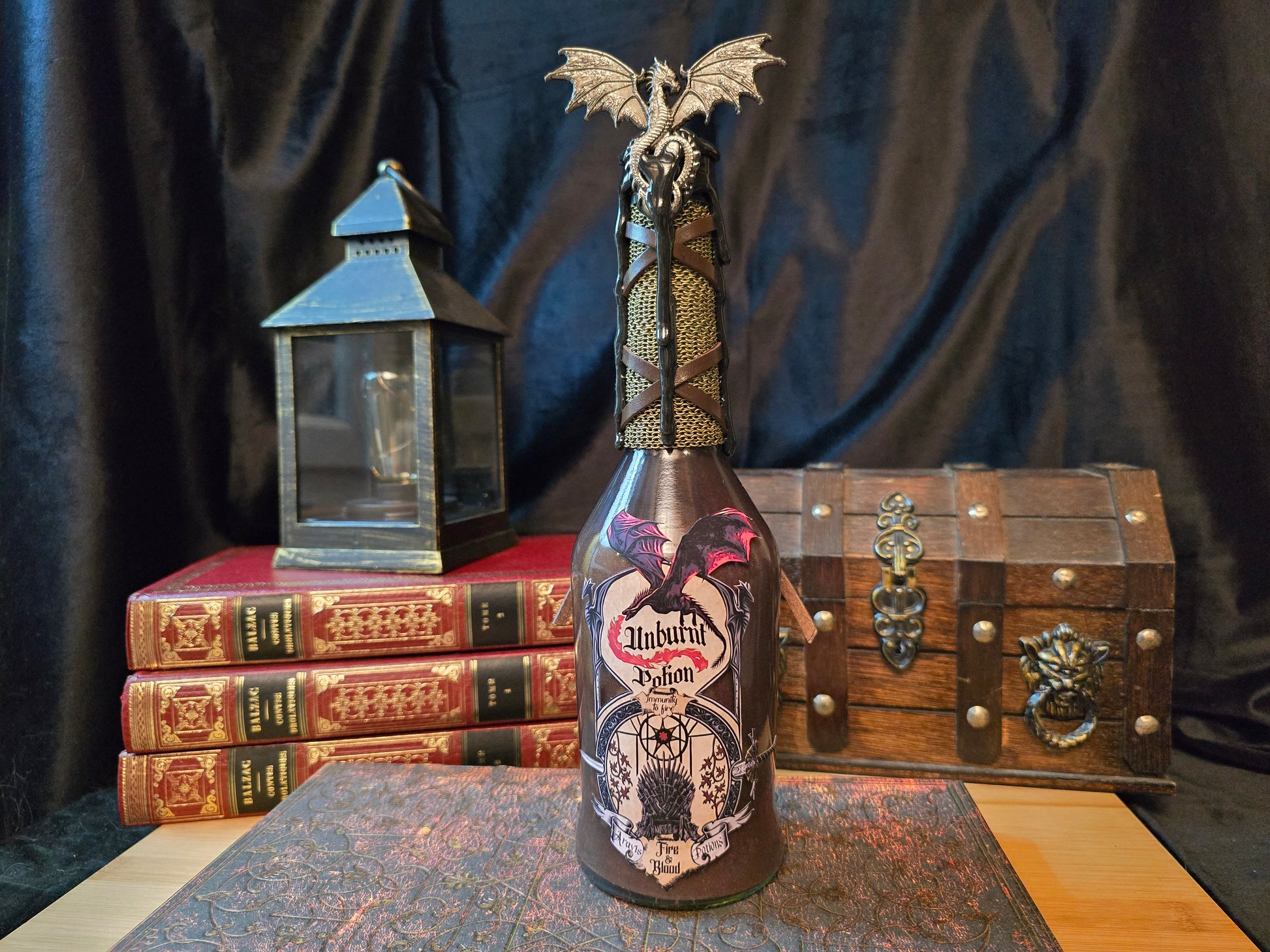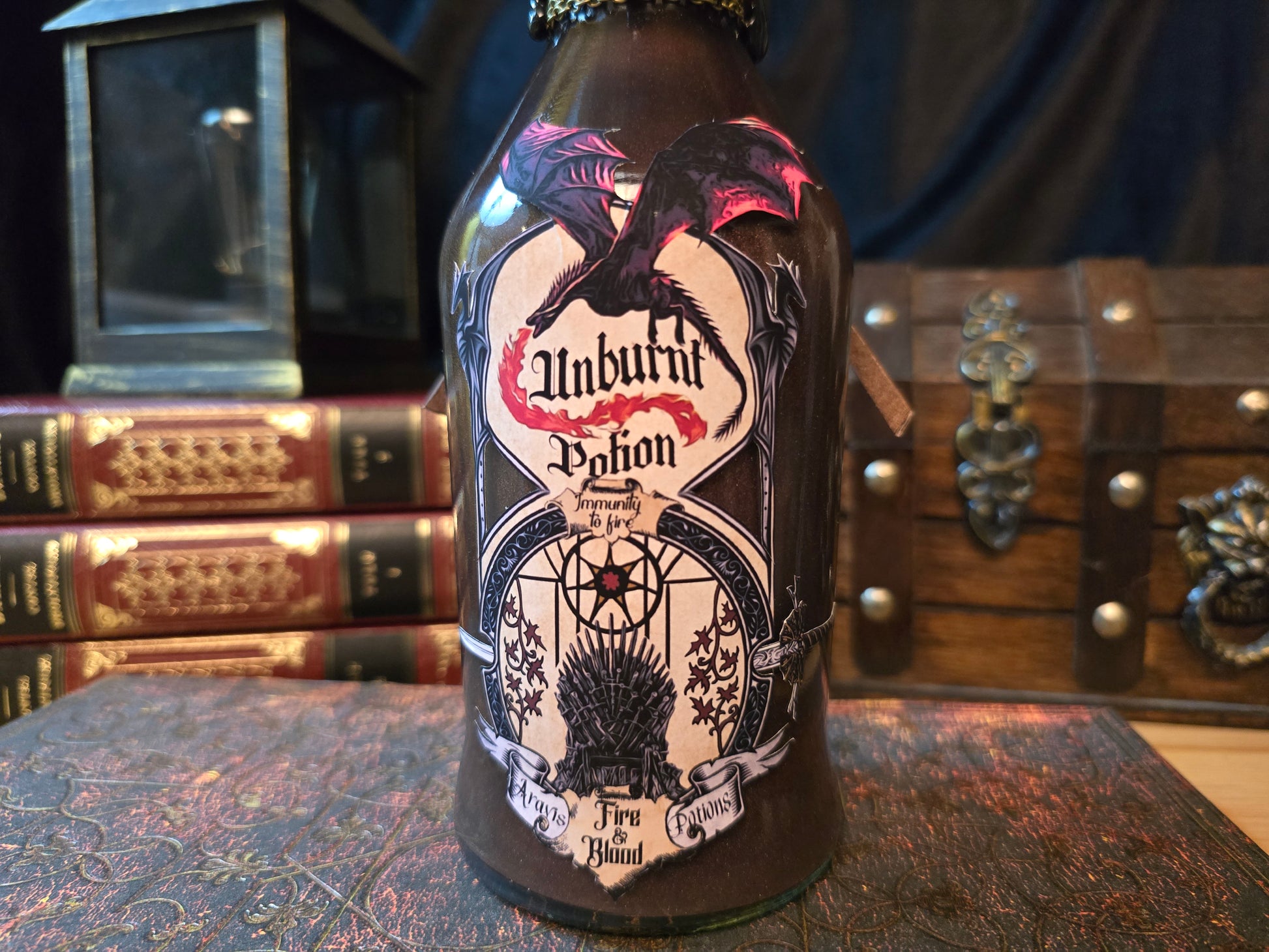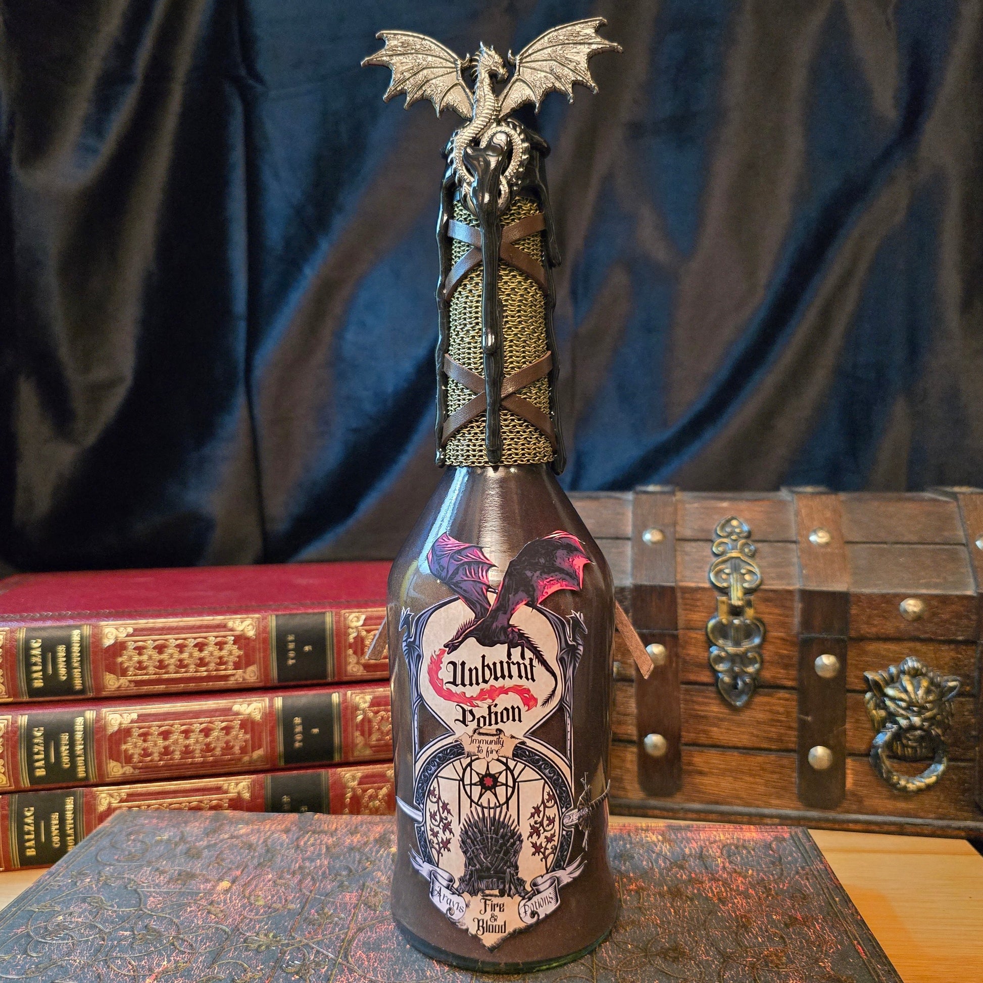 Unburnt - Potion magique - Targaryen, Danaerys, GOT, A song of ice and fire, Drogon, Mother of dragons, Bouteille en verre de décoration, Fiole d’apothicaire.