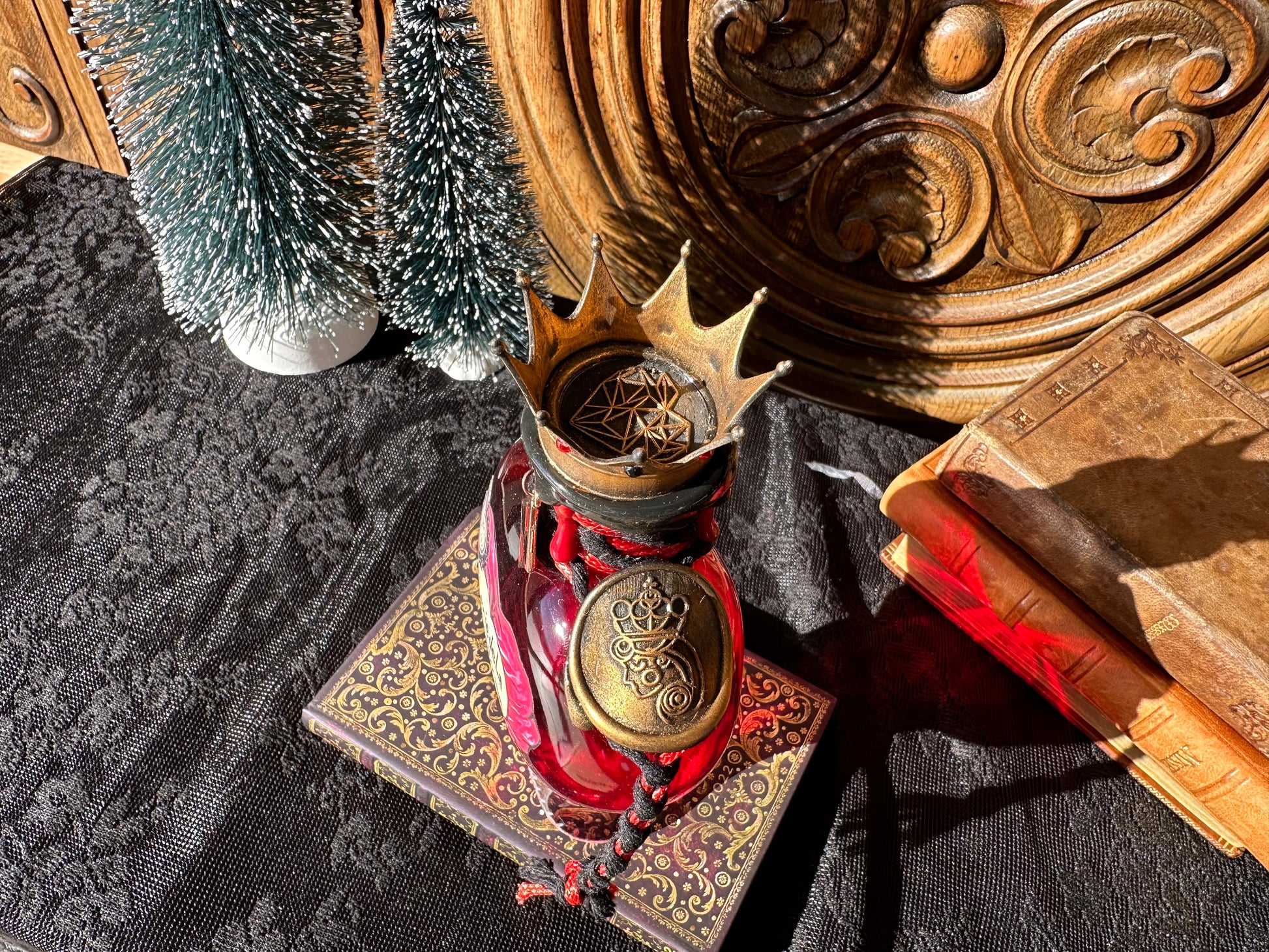 La potion vilénie de la reine rouge, inspirée du conte Alice au Pays des Merveilles, est une pièce de collection unique pour tout alchimiste, sorcier ou sorcière.
