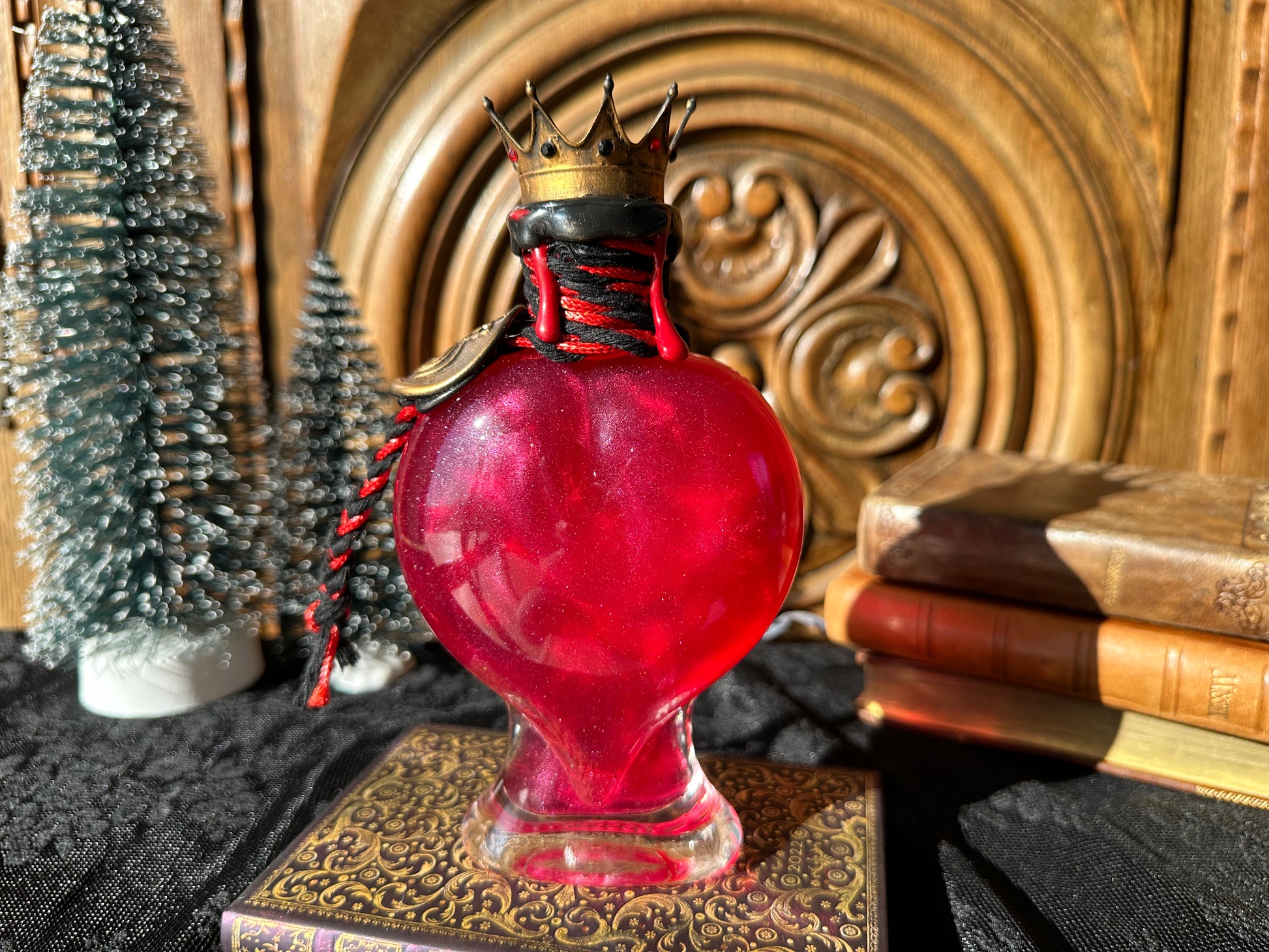 Vilénie de la Reine Rouge, Red queen’s Evil, Queen of Hearts, Alice au pays des merveilles, Alice In Wonderland, Fiole d’apothicaire.